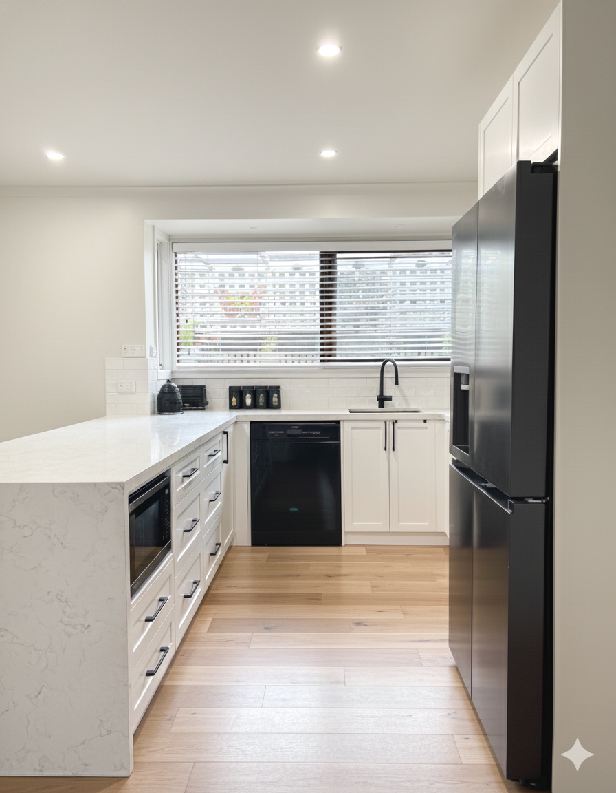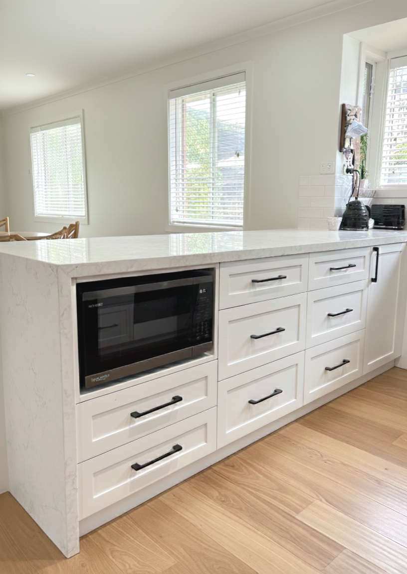 The Result: A triumph of light and logic. The new Macleod kitchen is a bright, high-capacity hub that feels significantly larger than its predecessor. By pairing the traditional elegance of the shaker profile with the durability of a premium white 2-pack finish, we’ve created a space that is as robust as it is beautiful. It’s a masterclass in storage-first design, delivered with the Blueprint to Build precision that ensures every cabinet and drawer functions as a high-performance tool for the modern home.